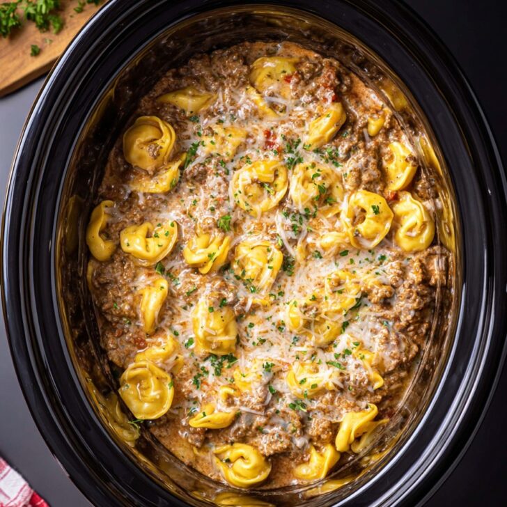 Crockpot Creamy Ground Beef Tortellini