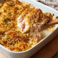 - Can I make this ahead? Yep! Assemble, cover, and chill. I usually add about 5 extra mins to baking time if it’s straight form the fridge.