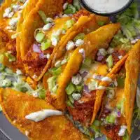 - Toppings: diced onions, chopped cilantro, shredded lettuce, sliced radishes, avocado, crumbled cotija, your favorite salsa (or just whatever’s lurking in your fridge)